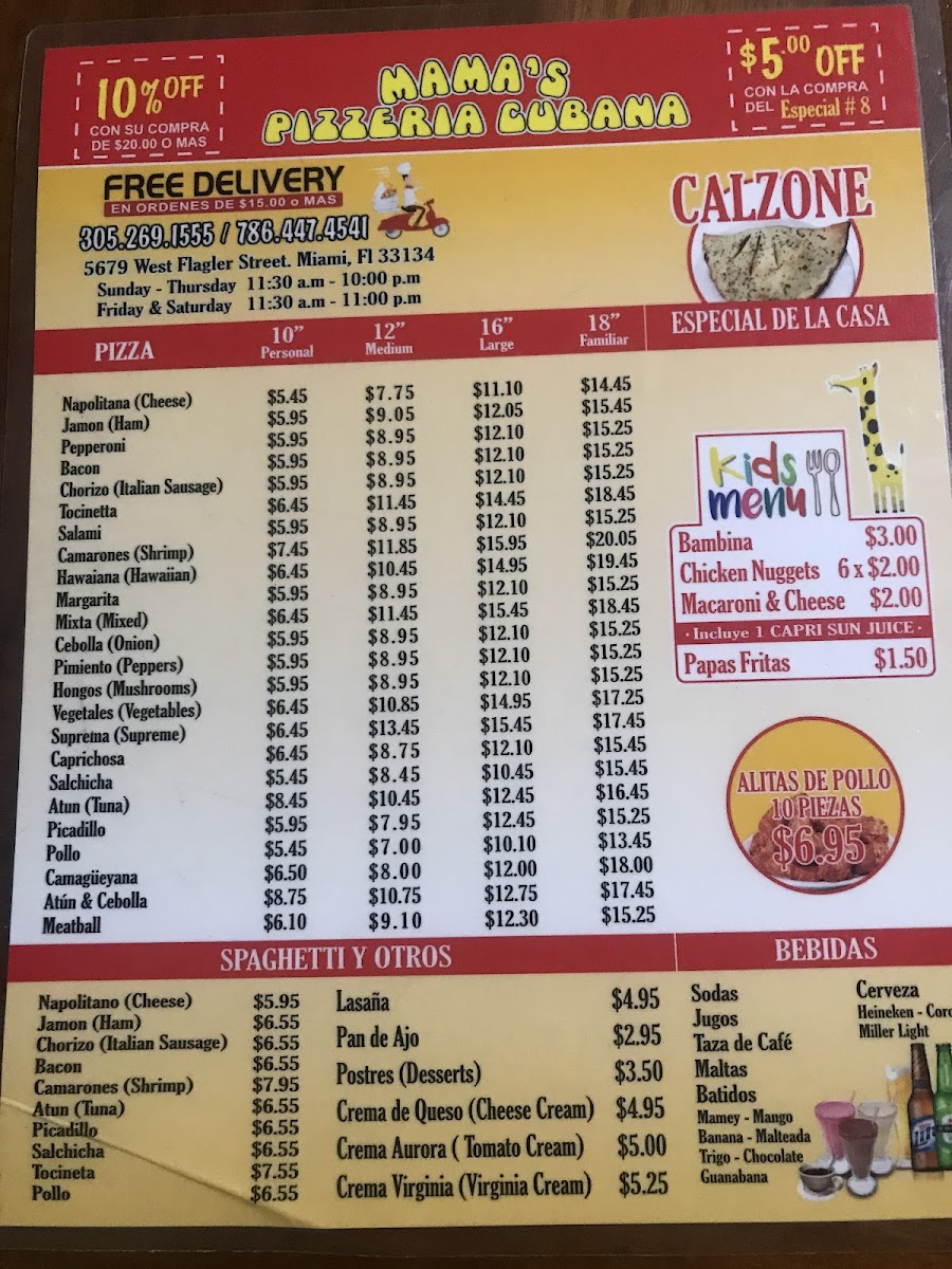 Welcome to Mama's Pizza - Coral Gables, a delightful culinary gem located at 5679 W Flagler St, Coral Gables, FL. This restaurant offers an inviting ambiance reminiscent of home, enriched by their friendly service.